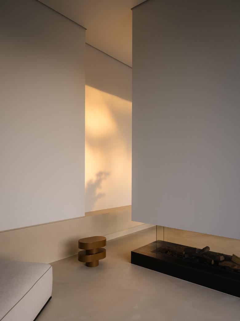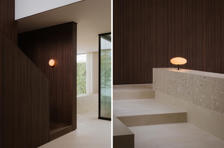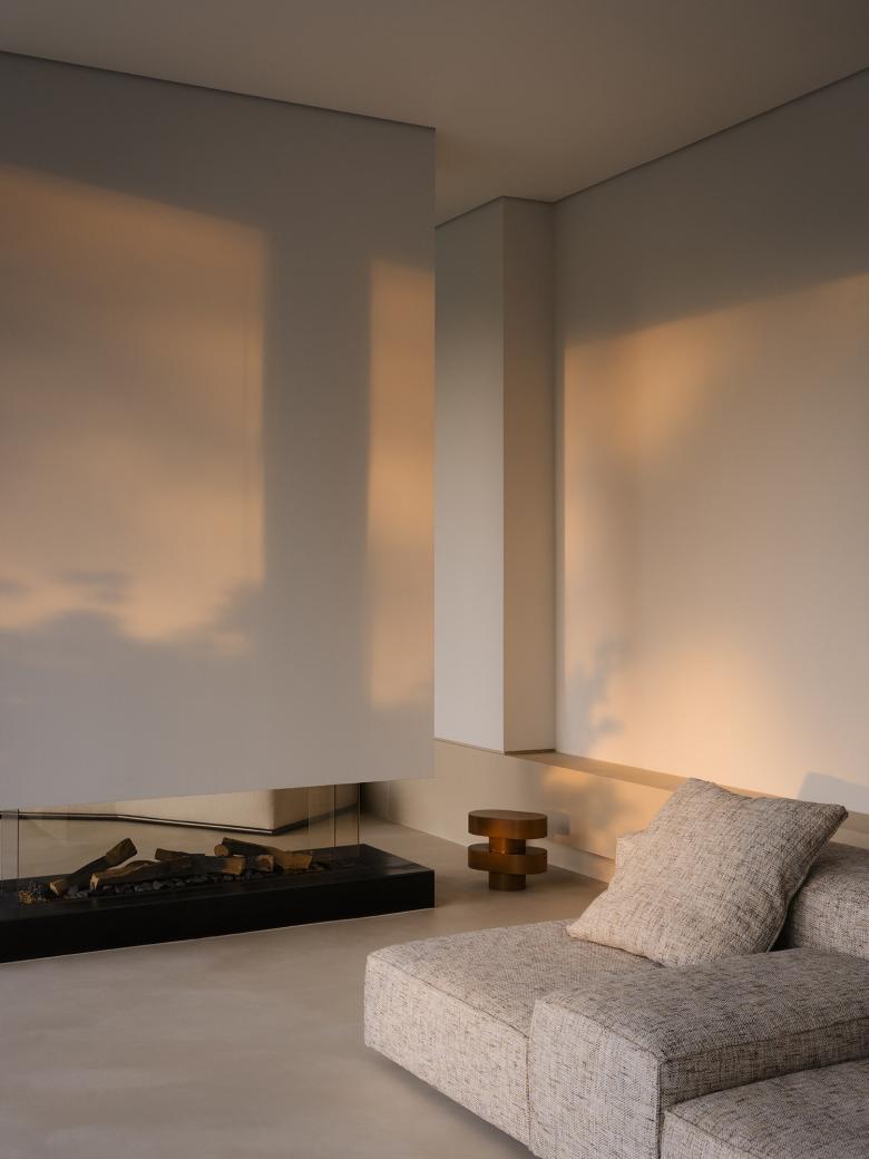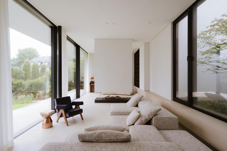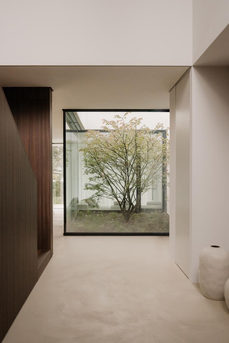 Das begrünte zentrale Atrium steht im Herzen des Hauses. Es verbindet die offenen Wohnräume über fließende Achsen miteinander und bringt Licht, Luft und Natur tief in den Innenraum. Es schafft Zonen der Gemeinschaft und der Ruhe – offen, unkompliziert, mit einem Selbstverständnis von Großzügigkeit.