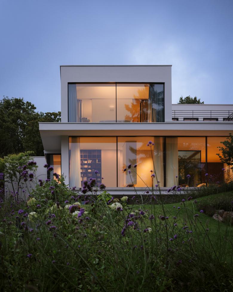 Eingebettet in einen parkähnlichen Garten mit Blick auf die sanfte Hügellandschaft des Taunus verbindet Haus Ayoughi Architektur, Interior Design und Landschaftsarchitektur zu einem harmonischen, ganzheitlichen Gesamtkonzept. Die Liegenschaft grenzt unmittelbar an einen großen historischen Park mit einer herrschaftlichen Villa – eine Umgebung, die dem Projekt seine besondere Atmosphäre und Ruhe verleiht.