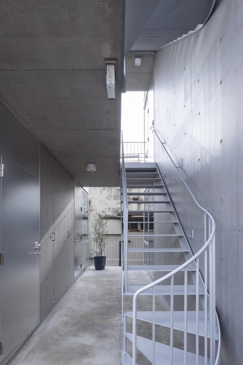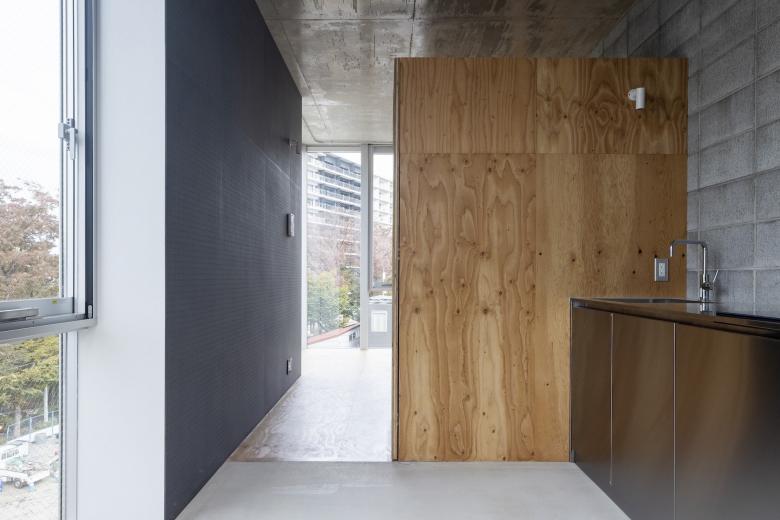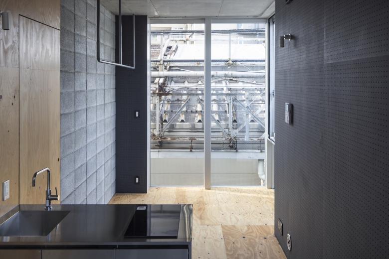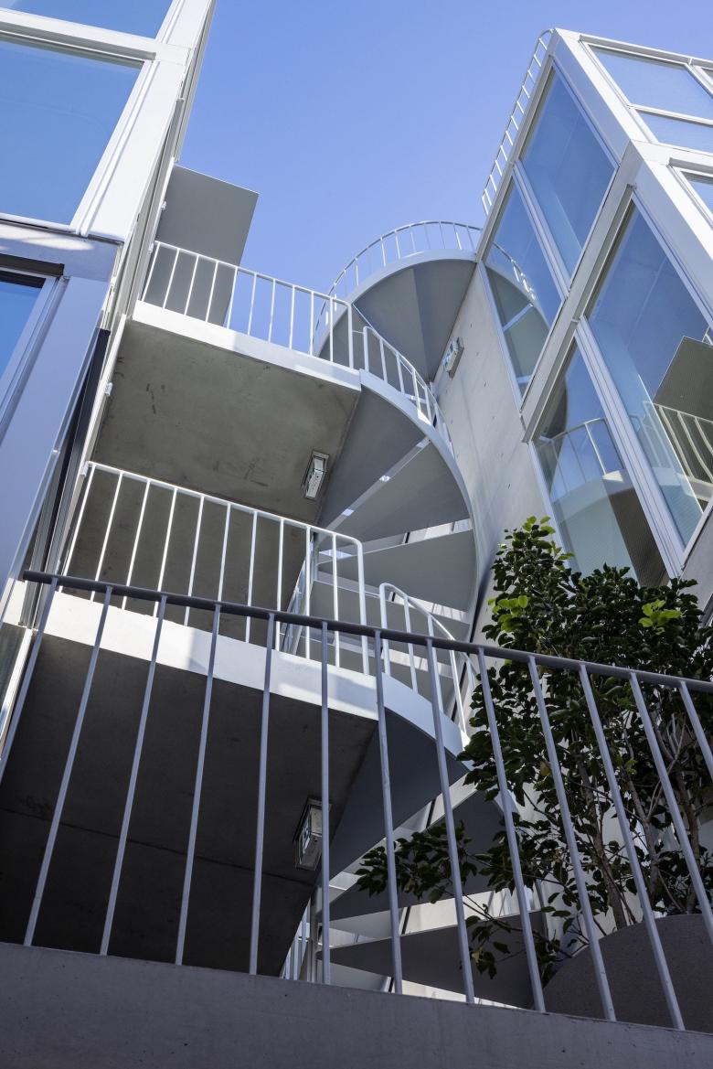 私たちはこの建物を、街を観察する装置であると考えた。住戸の隅部を開放することで、部屋が街に放り出されたような感覚が生まれる。そして部屋が接する街の様相は極めて多様である。