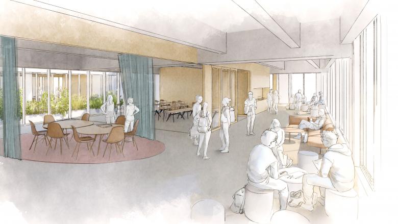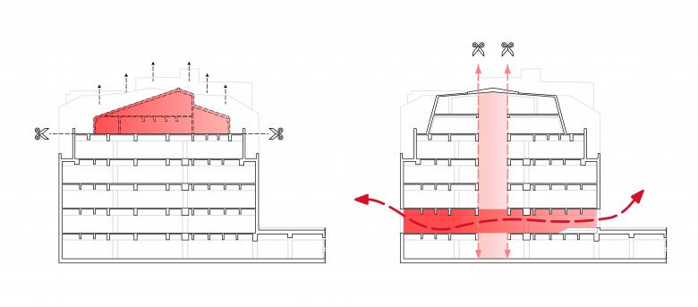Das aus den 1990er Jahren stammende Gebäude im Zentrum der Altstadt soll sich vom introvertierten Fremdkörper zum extrovertierten Kommunikationswunder entfalten. Kernidee des Umbaus ist dabei – neben dem Umbau des Daches –, ein über alle Geschosse mittig angelegtes Atrium zur Belichtung und Belüftung. Um dieses werden sich in den fünf Obergeschossen - abgeschirmt vom Trubel der Stadt -, zukünftig die Lernräume der Schulen gruppieren. Das Erdgeschoss wird sich hingegen maximal öffnen und gemeinsam mit dem Untergeschoss als multifunktionaler Veranstaltungsraum mit Café, Bühne und Tribüne allen Bürgerinnen und Bürgern zugänglich sein. Von besonderer Bedeutung ist hierbei die räumliche und inhaltliche Einbindung der Musikhochschule Lübeck. Die Belebung der Innenstadt ist ohne Mobilitätskonzept nicht denkbar. Aus diesem Grund sollen circa 400 Fahrradstellplätze in die vorhandene Unterbauung der Schrangen integriert werden.