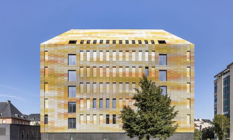 Das ungewöhnliche und farbenfrohe Design des Gebäudes entstand durch die «Verpixelung» des Freskos «Chiron und die Erfinder der Medizin» aus Pompeji. Umgesetzt wurde es in einer Kamee aus Ocker- und Sandfarben, die an die elsässischen Ziegeldächer von Strassburg erinnert.