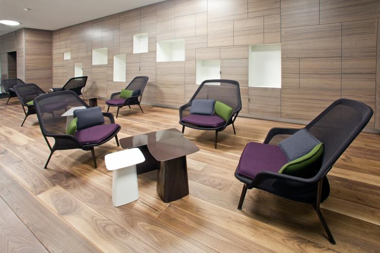 Project for Conix Architecs : entry hall renovation of an office building situated in the Brussels business area of the train station "Gare du Nord". A new concept for the entry hall was created; including a 40m² LED-screen as well as meeting rooms and cafeteria. In a second project phase, office spaces as well as a meeting room reception area for the new tenant were built.