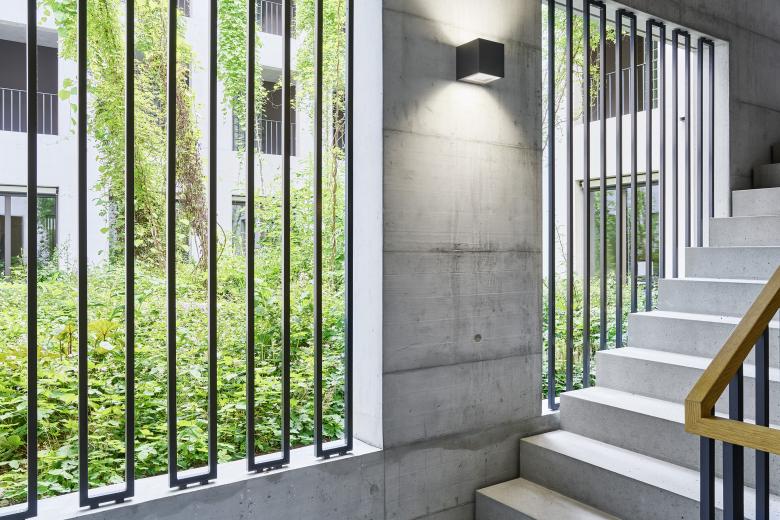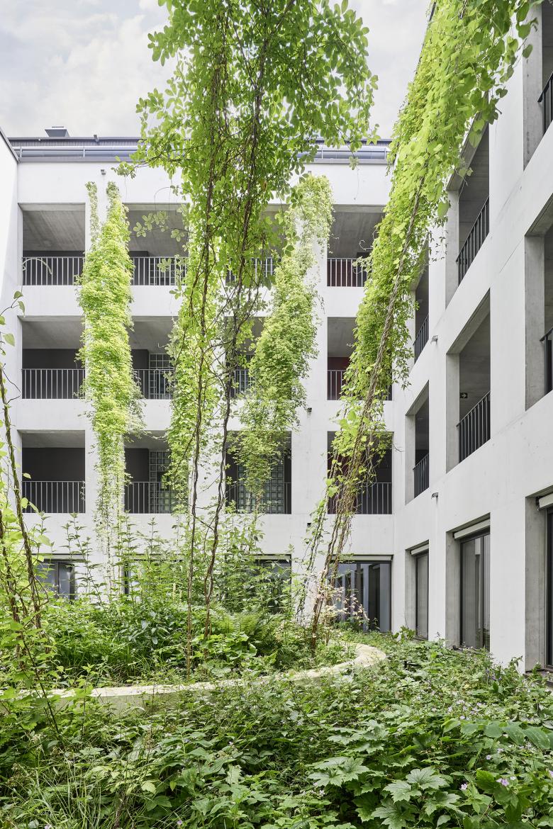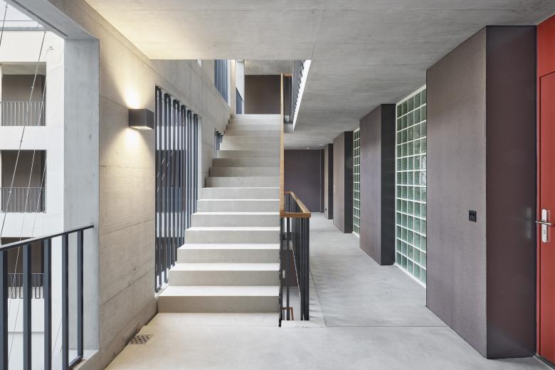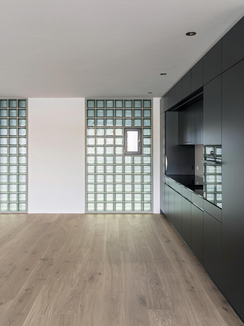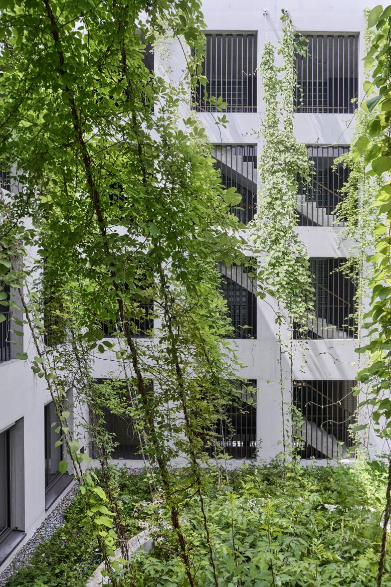 Der Neubau ist nahe an die Gotthardstrasse gesetzt. Im überhohen Erdgeschoss ist neben den Kundenflächen der Bank Thalwil eine Markthalle mit offenen Gewerbeflächen vorgesehen, die sich mit grosszügigen Fensterfronten zum Platz hin öffnen. Ein vertikal begrünter Innenhof dient als Erschliessungsraum für die Wohnungen in den oberen Geschossen. Im ersten Obergeschoss orientieren sich die Büroarbeitsplätze der Bank Thalwil mit Fensterflächen zu diesem Lichthof. Der Neubau beherbergt zudem die Infrastruktur eines Fernwärmeprojekts des Energieverbunds Thalwil, das mit Seewasser rund hundert Wohnungen im Zentrum von Thalwil versorgt.