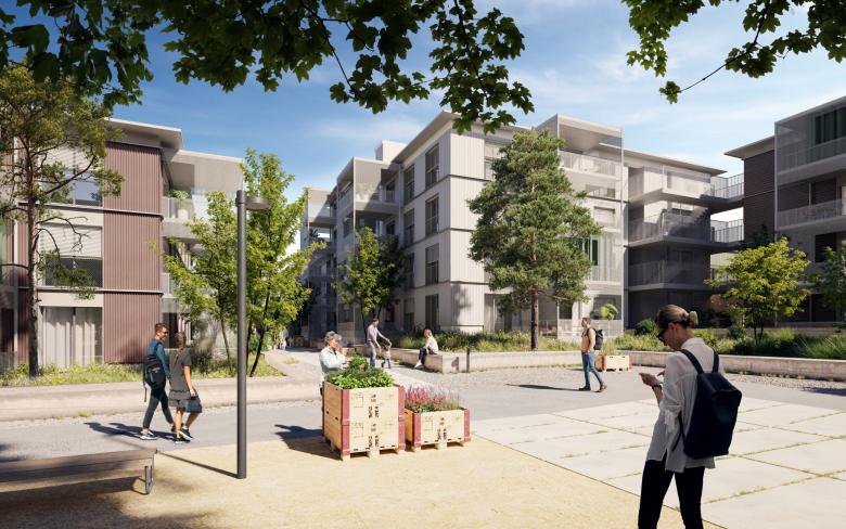Die „Waldstadt im Pantli“ ist ein zukunftsweisendes Wohnprojekt an der Grenze zwischen Schaffhausen und Stetten. Auf einer 47.600 m² grossen Waldlichtung entstehen in einem oberirdisch autofreien Areal 214 Wohnungen, die sich mit natürlichen Holzfassaden harmonisch in die Umgebung einfügen. Die Waldstadt wird nach ihrer Fertigstellung SNBS zertifiziert und stellt damit als erste kantonale SNBS Zertifizierung ein Meilenstein für die Schaffhauser Architekturszene dar. Die neue Waldstadt Im Pantli entsteht auf einer Parzelle Bauland eingebettet in Waldflächen und sanfte Hügel: Familien, ältere Menschen, Paare und Singles sollen hier gemeinsam wohnen. Gemeinschaftlich nutzbare Räume wie Bistro, Kita und Kindergarten, ein Quartiertreff, ein zentral gelegener Quartierplatz und ein Quartierladen fördern Austausch und Nachbarschaft. Die neue Bushaltestelle „Pantli“ sorgt für eine gute Anbindung an Schaffhausen, den Bahnhof und somit auch Richtung Zürich.