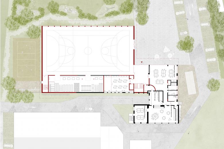 Aus der Nähe zum Gemeindesaal und der Doppelturnhalle ergibt sich für die Tagesstruktur ein grosses Synergiepotential.