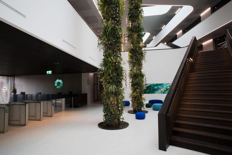 Auf dem industrie-historisch bedeutenden Maggi-Areal erweitert der Aroma- und Duftstoffhersteller Givaudan sein Forschungszentrum. Es schafft Raum für 290 Arbeitsplätze im Bereich Forschung und Entwicklung. Die Laborneubauten umschliessen ein Atrium, das als gemeinsamer Raum für Begegnung und Austausch dient. Neben der Ausführung gemäss dem Nachhaltigkeitsstandard «LEED Gold», zeichnet sich das Gebäude auch durch die 12m hohen Pflanzensäulen aus. Hierfür wurden spezielle Leuchten entwickelt um das Wachstum der Pflanzen und somit auch das Raumklima zu fördern.