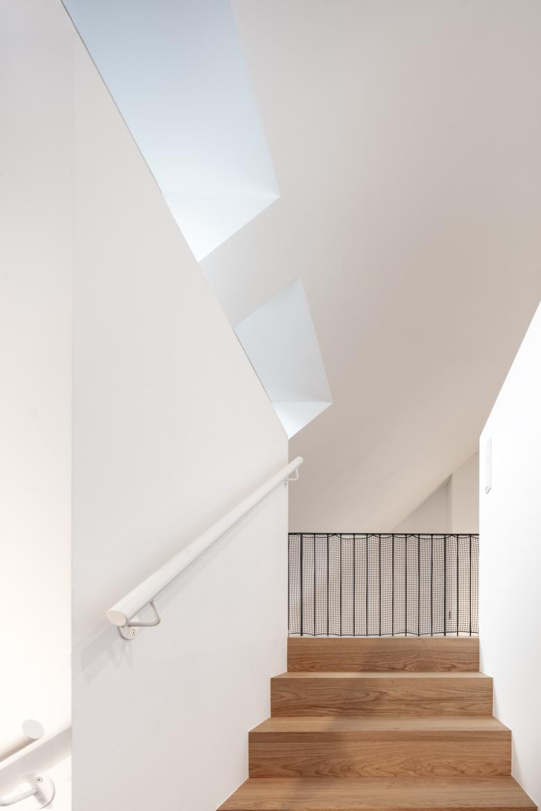 Das Haus SHS ist ein Neubau in Holzbauweise. Ursprünglich hätte das Bestandsgebäude umgebaut werden sollen. Obwohl relativ jung (aus den 1980er Jahren), hat sich der Umbau dieses Gebäudes, nach eingehender Überprüfung, als technisch und wirtschaftlich zu aufwendig erwiesen. Die damals gewählte Bauweise mit Massivfertigteilen (sowohl für Decken als auch für Wände) ist für einen Umbau zu unflexibel.