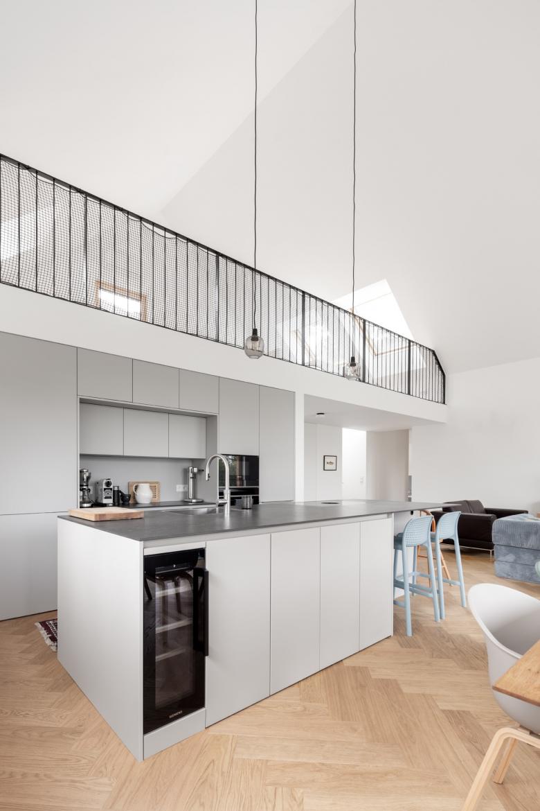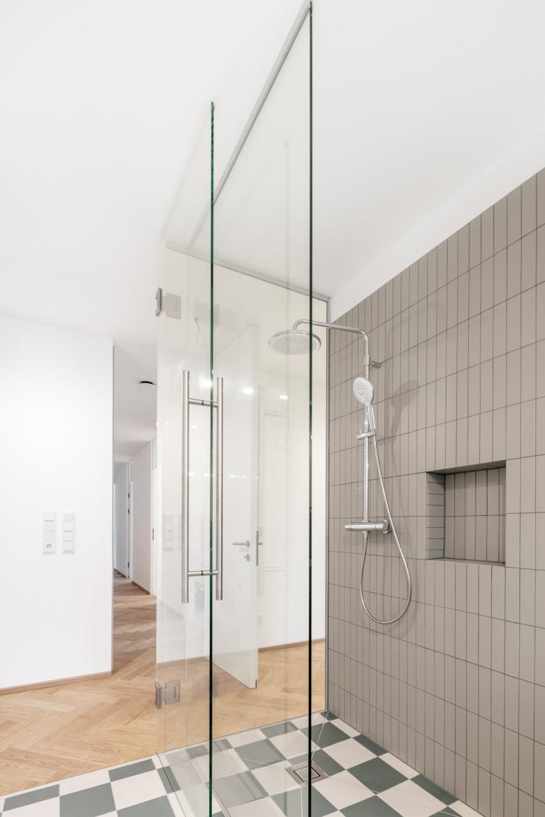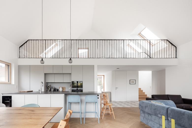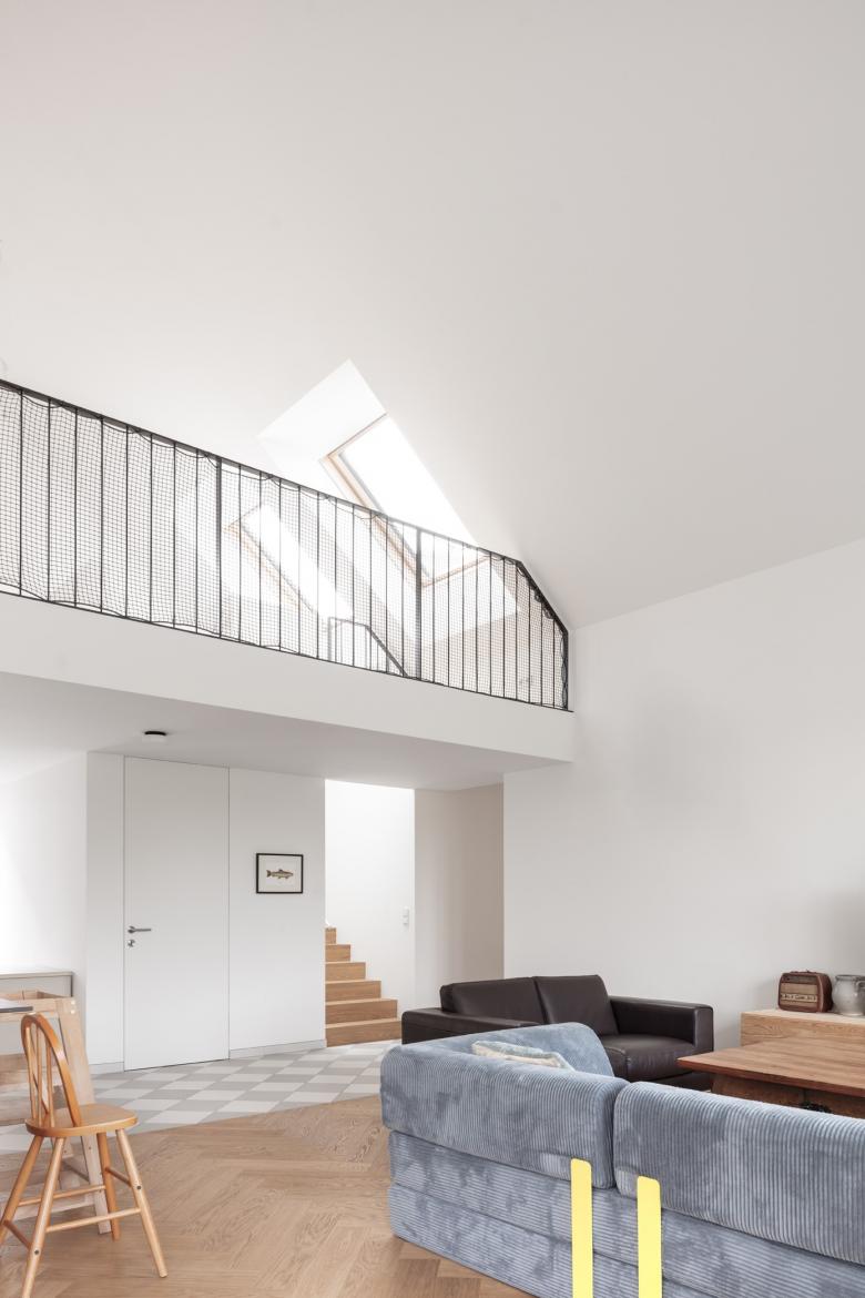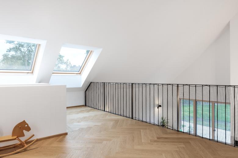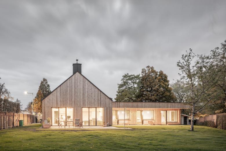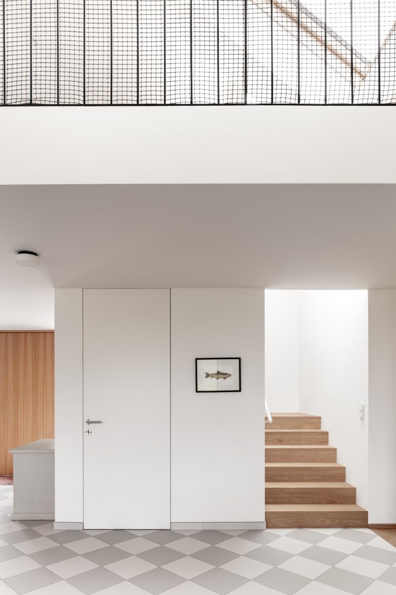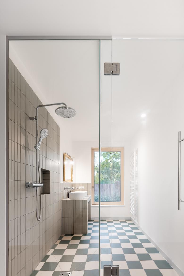 Der Neubau wurde so positioniert, dass anstelle der vorherigen drei Restflächen eine große zusammenhängende Gartenfläche entstand. Diese orientiert sich in Richtung der daneben fließenden Schwechat und somit sind von der Terrasse und vom Garten so gut wie keine Nachbargebäude zu sehen. In diese Richtung öffnet sich das Haus; zu dem direkten Nachbarn auf der gegenüberliegenden Seite bleibt es relativ geschlossen.