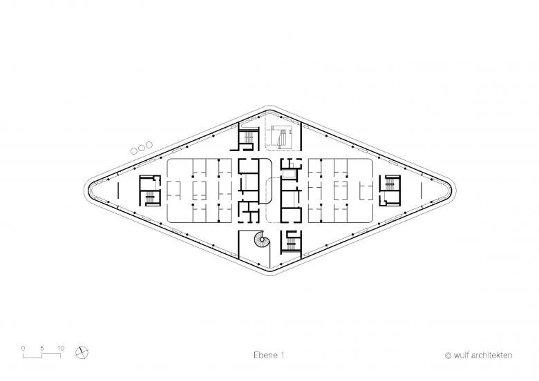 Der Helmholtz Pioneer Campus bietet als neues Labor- und Bürogebäude in Neuherberg vor den Toren Münchens internationalen Wissenschaftlern einen hochmodernen, auf ihre besonderen Bedürfnisse abgestimmten Arbeitsplatz. Da die Forscher im Gebäude nur fünf bis sieben Jahre in so genannten »Pioneer Groups« arbeiten, wurde Flexibilität zu einem entwurfsbestimmenden Faktor. Der Helmholtz Pioneer Campus unterstützt interdisziplinäres Arbeiten und fördert durch seine innere Organisation, die die Struktur eines Campus antizipiert, insbesondere die formelle und informelle Kommunikation. Das in Stahlbeton-Skelettbauweise ausgeführte Gebäude positioniert sich selbstbewusst in Form eines markanten Rhombus in die gleichförmige, rechtwinklige Struktur des Helmholtz Zentrums und setzt am neu entstandenen Gaborplatz einen deutlichen baulichen Akzent.
