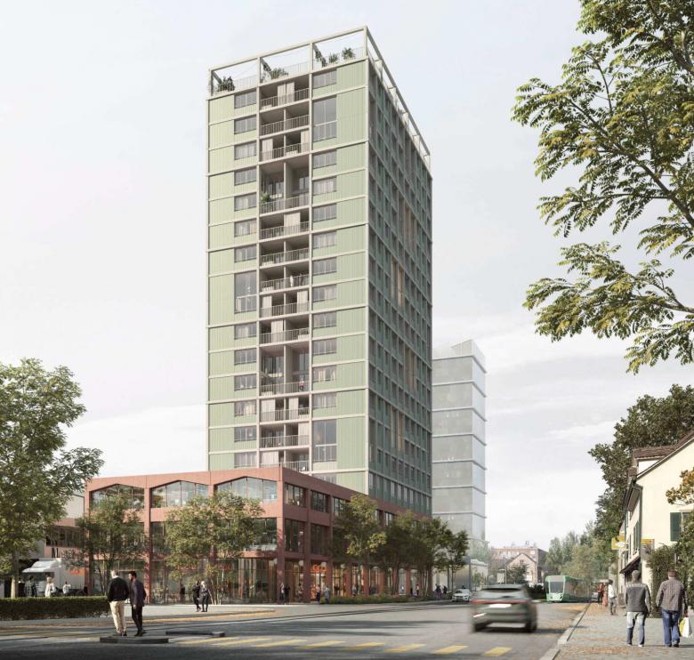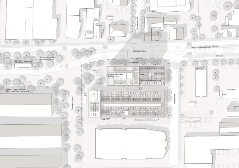 In Zukunft soll die Binningerstraße in Allschwil zu einem lebendigen Standort für Gewerbe, Dienstleistungen und Wohnungen werden, die Lebensqualität soll durch neue Grün- und Freiräume sowie eine bessere Vernetzung gesteigert werden. Ein neu entwickelter Masterplan sieht eine Mischung aus verschiedenen Nutzungen vor. Das Ortsbild wird durch die ehemaligen Ziegelhallen geprägt. Ein kürzlich entschiedener Wettbewerb zur Umnutzung des Ziegelei-Areals Ost wurde vom Team Pool Architekten gewonnen, das den Bestand geschickt mit neuen Gebäuden kombiniert hat. Der Hochhausentwurf von Superdraft Studio ergänzt das Projekt und stärkt die städtebauliche Struktur, indem er die Außenräume gezielt aufwertet.