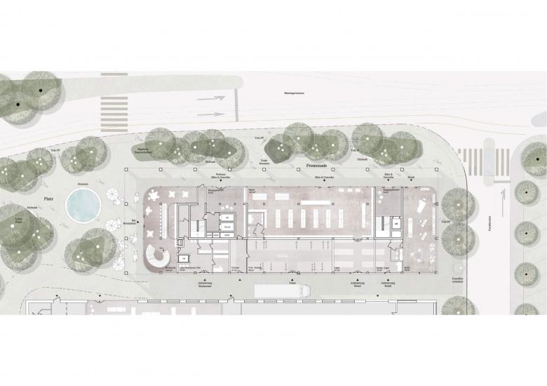 Superdraft Studio wurde neben drei weiteren Architekturbüros eingeladen, einen Entwurf für den Standort auszuarbeiten. Auch wenn am Ende ein anderes Projekt für die Weiterbearbeitung auserwählt wurde, hat das Team mit seinem Entwurf einen spannenden Input zur Standortentwicklung beigetragen.