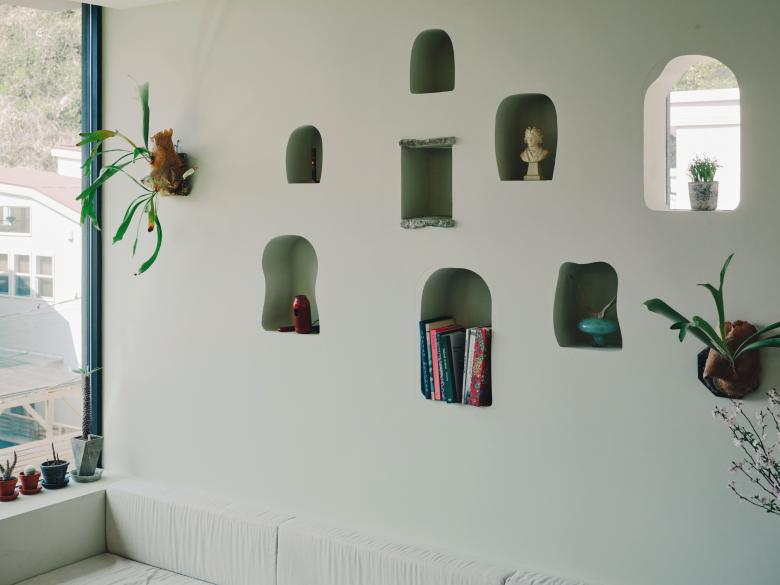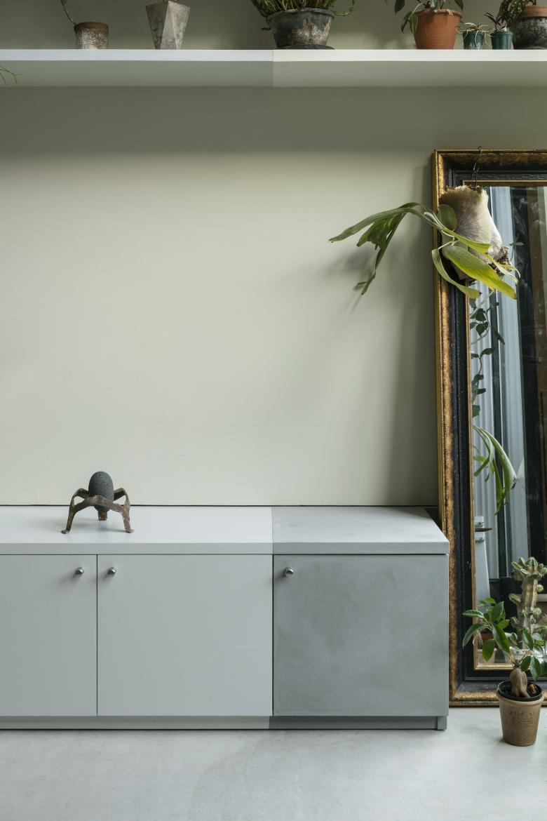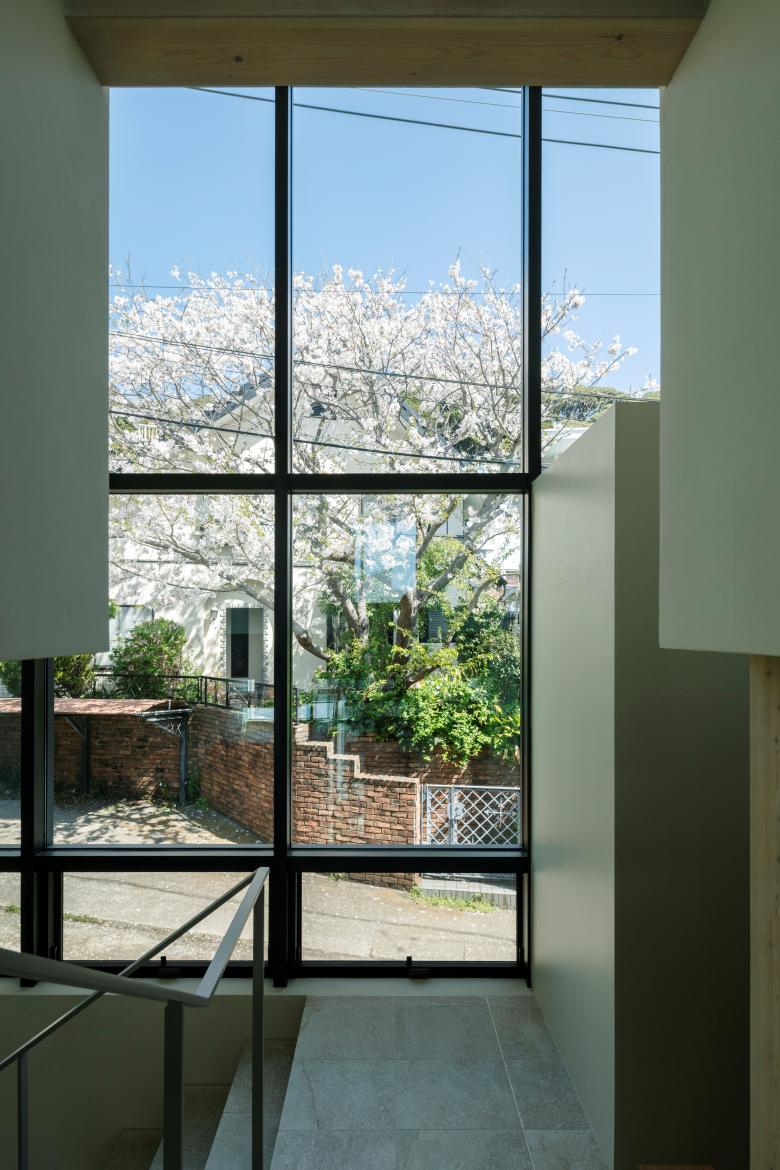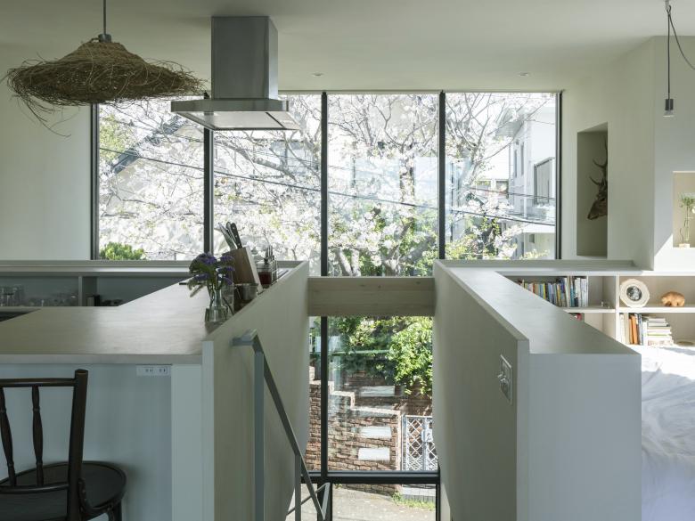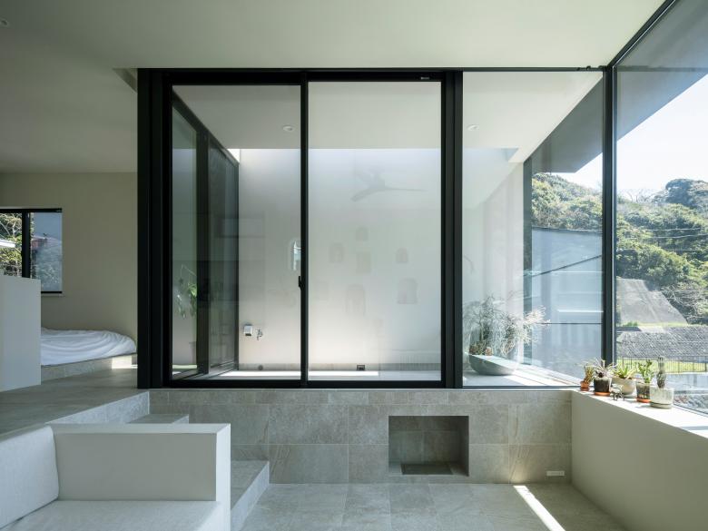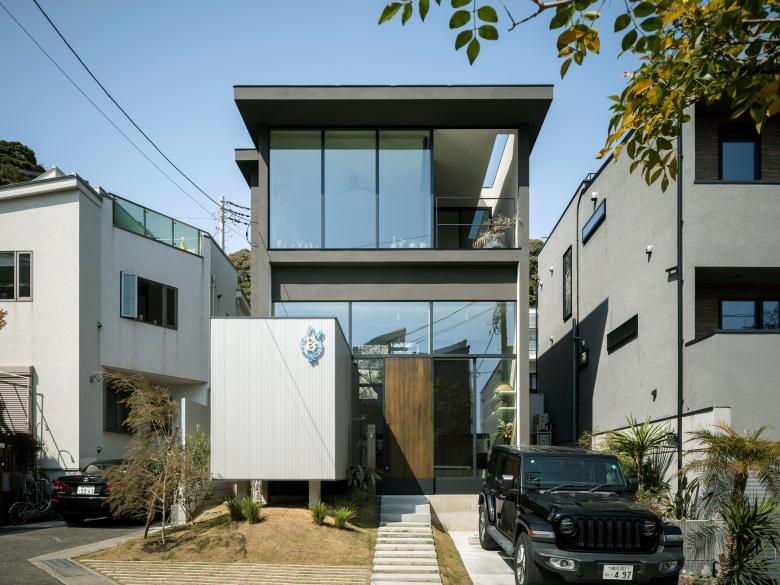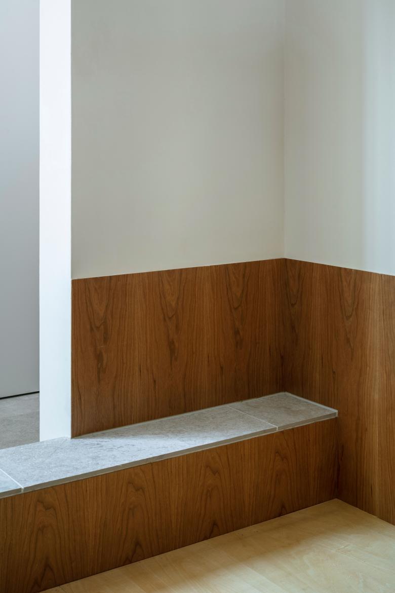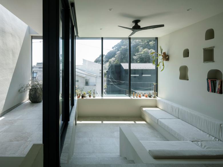 アヴァンギャルドなアパレルを手がけるデザイナー夫妻のための、アトリエ併設住宅である。本計画は、ファッションにおける〈ずらす〉〈はずす〉〈くずす〉という操作を、建築に拡張する試みである。仕上材はあえて余剰を見込まず実数で発注し、現場で生じた材料の不足や余りに即興で応答することで、入隅・出隅に“ずれ”を持ち込む納まりとした。慣習的な納まりからの脱却であると同時に、素材廃棄の削減にもつながっている。平面構成もこの操作と連動しており、異なる素材で仕上げた機能コアが、ワンルーム空間に縫い込まれるように配置されている。ファッションの文脈から引き出されたこれらの操作により、建築と素材の関係に批評的な厚みを与え、空間の均質性や設計の規範を問い直すことを試みた。
