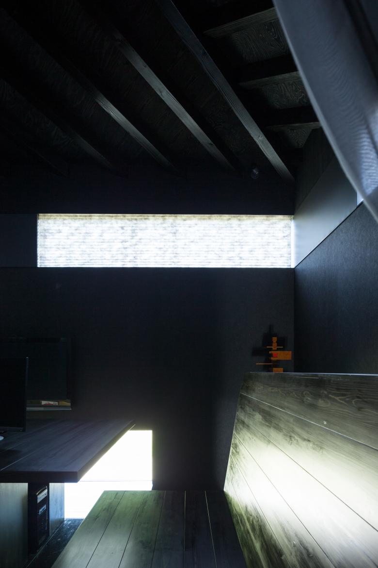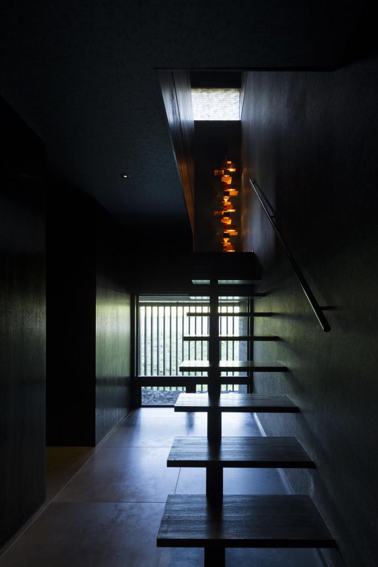 “Kikko An” is a house wrapped in jet-black darkness that expresses the strong individuality of the owner. The light from the outside is suppressed to the point of asceticism, and everything from the finishes to the accessories is unified in black. The view seen through the small windows opened in the darkness gives a strong and vivid impression, and makes one keenly aware of the changing of the four seasons.
