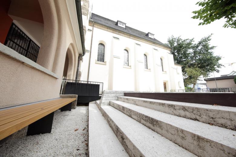 Der neue Kirchplatz als geneigte Fläche erschliesst die unterschiedlichen Eingänge barrierefrei.