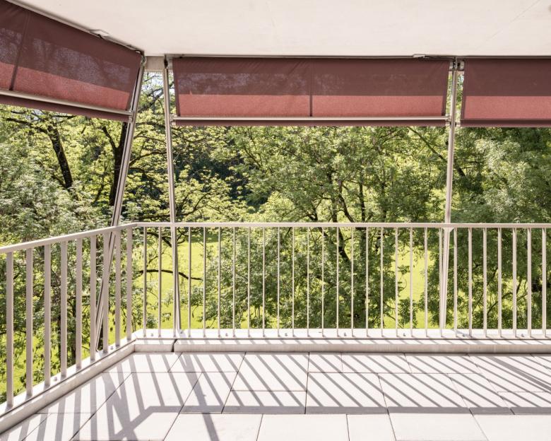 Textiler Sonnenschutz mit Spezial-Führungsschienen
