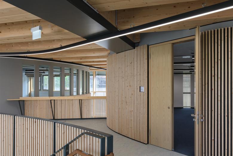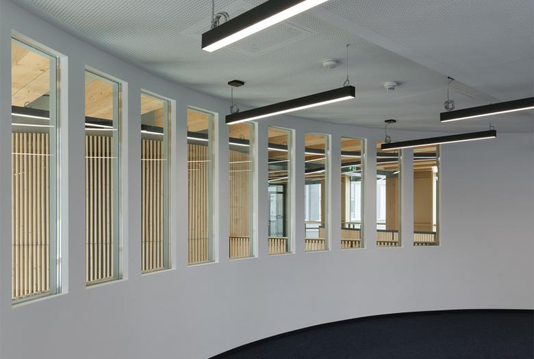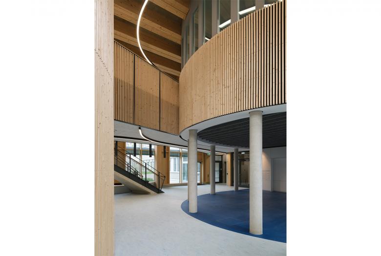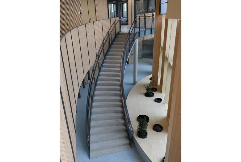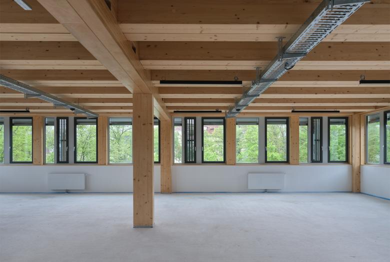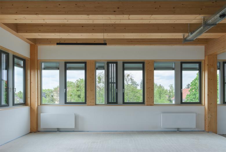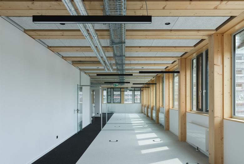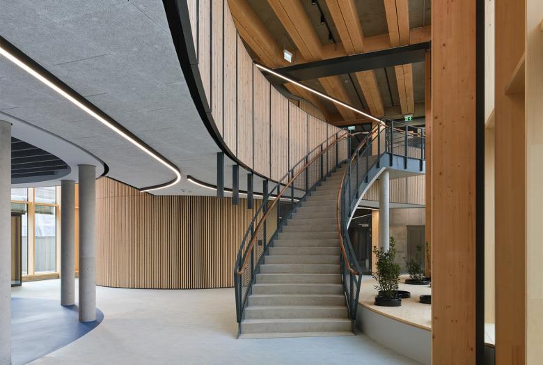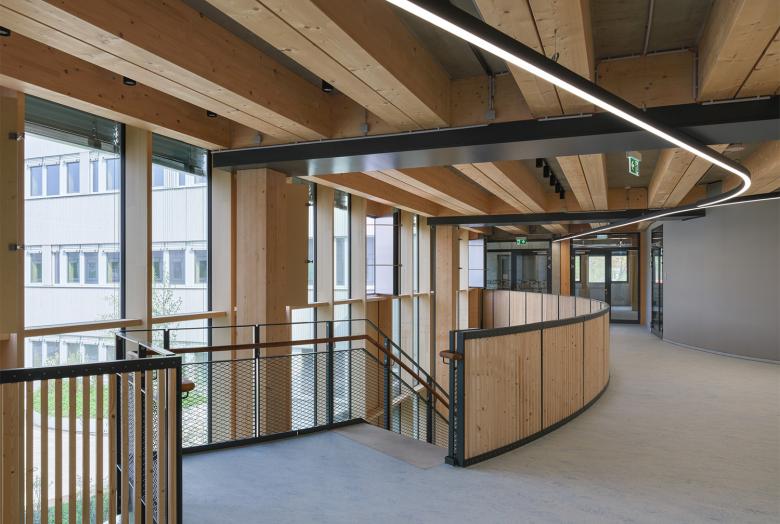 Wissenschaft und Wirtschaft begegnen sich auf dem Life-Science-Campus FUBIC in Berlin-Lichterfelde. Hier plant BFA 7.200 Quadratmeter Labor-, Arbeits- und Kommunikationsflächen: das FUHUB. Labore und Büros werden im 4-geschossigen Nordflügel untergebracht, im Südflügel sind auf 3 Etagen reine Büroflächen geplant. Vermittelnd dazwischen beherbergt eine zweigeschossige Halle den Empfangs- und Kommunikationsbereich. Begegnen können sich die Nutzer*innen auch auf der intensiv begrünten Dachterrasse. Übrige Dachflächen werden begrünt und mit Photovoltaikanlagen bestückt. Die Photovoltaik erzeugt den Großteil des benötigten Betriebsstroms selbst, die gesamte Beheizung wird über Wärmepumpen gewährleistet. Eine Zisterne sammelt das anfallende Regenwasser, das zur Bewässerung der Grünanlagen genutzt wird. Der CO2 -sparende Holzhybrid-Bau strebt eine Zertifizierung nach DGNB in Platin an.