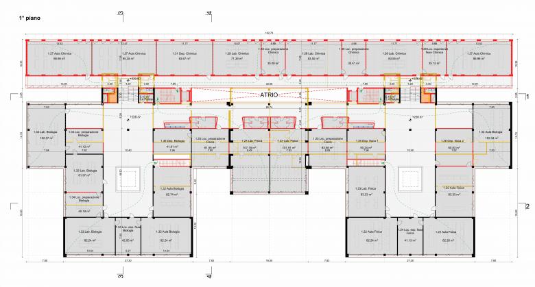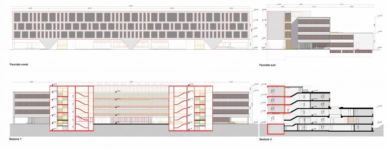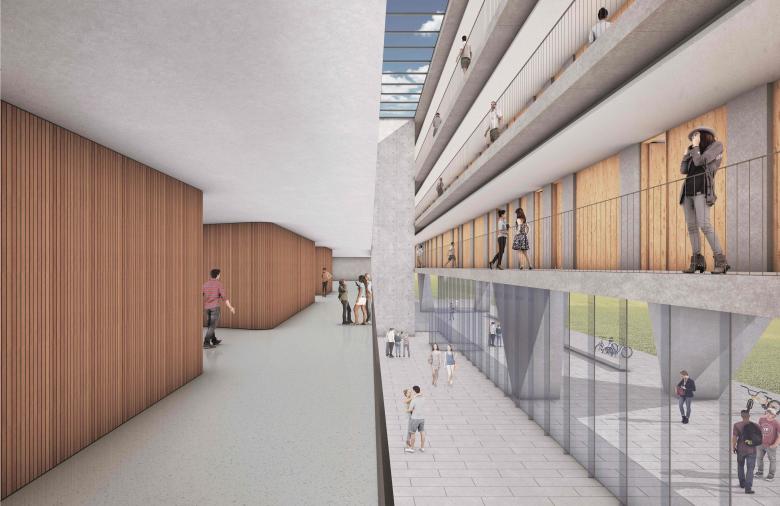 Il Liceo di Bellinzona fa parte del comparto Torretta che si estende dall’archivio di Stato a sud al bagno pubblico a nord; a ridosso della golena del fiume Ticino, definisce il limite di un’ampia area verde. Con l’ampliamento si conferma il principio di limite e di sviluppo lineare, che in futuro potrebbe essere ampliato ulteriormente verso nord. Con un nuovo corpo sospeso, aggiunto a quello esistente, si vuole dare una facciata verso lo spazio fluviale e creare uno spazio pubblico tramite un ampio porticato che diventa la nuova e rappresentativa entrata. L’entrata dal lato dello spazio fluviale coincide inoltre con il concetto della rete di vie ciclabili del bellinzonese.