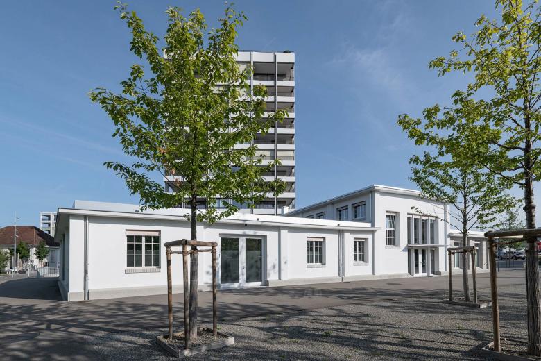 Das Projekt sieht den Abbruch der zu niedrigen Garage vor und in selben Grundriss leicht höher, neu erstellt. Die anderen Gebäudeteile sind für gewerbliche (Büro-) Nutzungen instand zu setzen: Einbau von Wärmedämmung, Heizung und Grundinstallationen. Der angrenzende grosszügige Aussenraum wird gestalterisch aufgewertet.