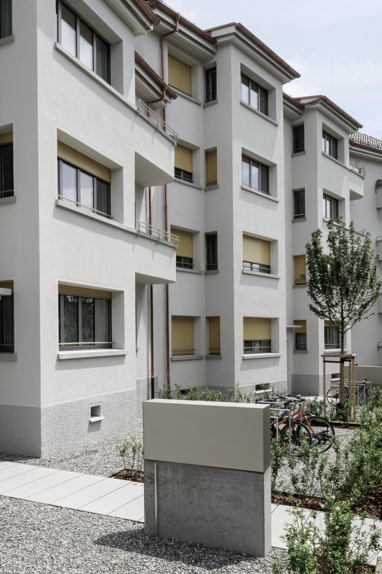 Die Umgebung der Überbauung steht exemplarisch für eine Siedlungsform mit gemeinschaftlicher Prägung. Historisch diente die Umgebung primär der gärtnerischen Nutzung - mit Gemüsegärten, Blumenbeeten und Obstbäumen - die eine enge Verbindung zwischen den Bewohner:innen und der Natur sowie untereinander förderte. Dieses gemeinschaftliche Grundprinzip wurde in der Neugestaltung aufgenommen und zeitgemäss interpretiert. Das Konzept zielt darauf ab, die historische Nutzung als gemeinschaftliche Gartenlandschaft sichtbar zu machen und in eine heutige Wohnumgebung zu überführen, die nachbarschaftlichen Begegnungen und ökologische Vielfalt fördert.