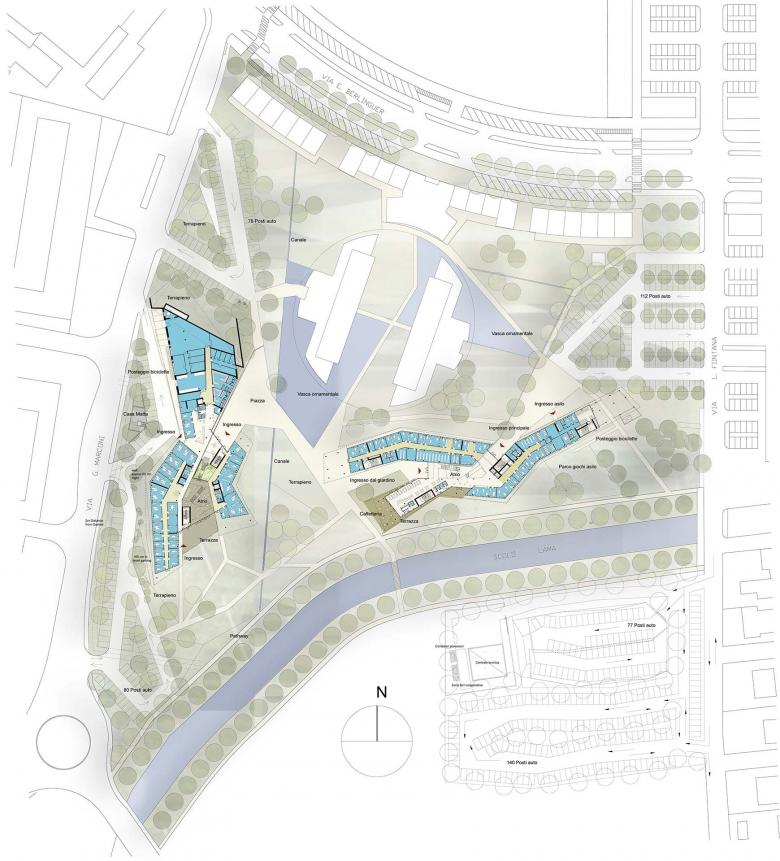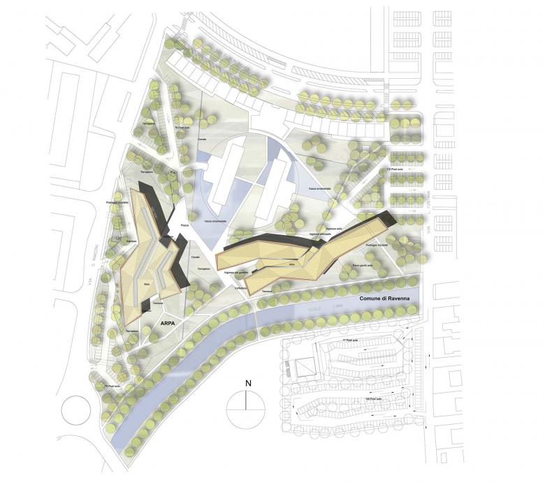 Both the new laboratory and administration building for ARPA (Agenzia Regionale Prevenzione e Ambiente Dell‘ Emilia-Romagna) and the new building for the city administration are to be located at the western edge of the city of Ravenna.