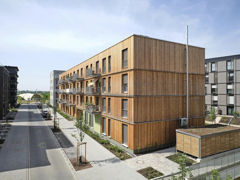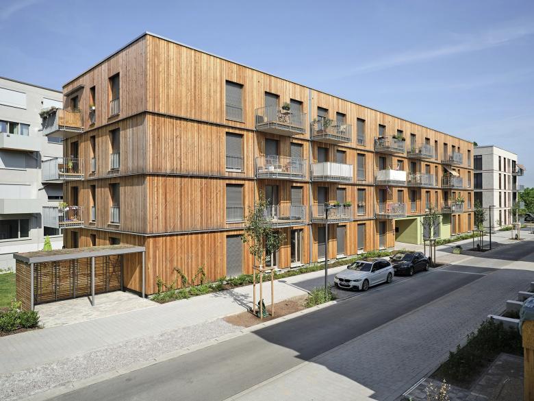Architekturfotografie in Mannheim - hybrider Neubau mit Fertigbauteilen aus Stahlbeton und Holz
