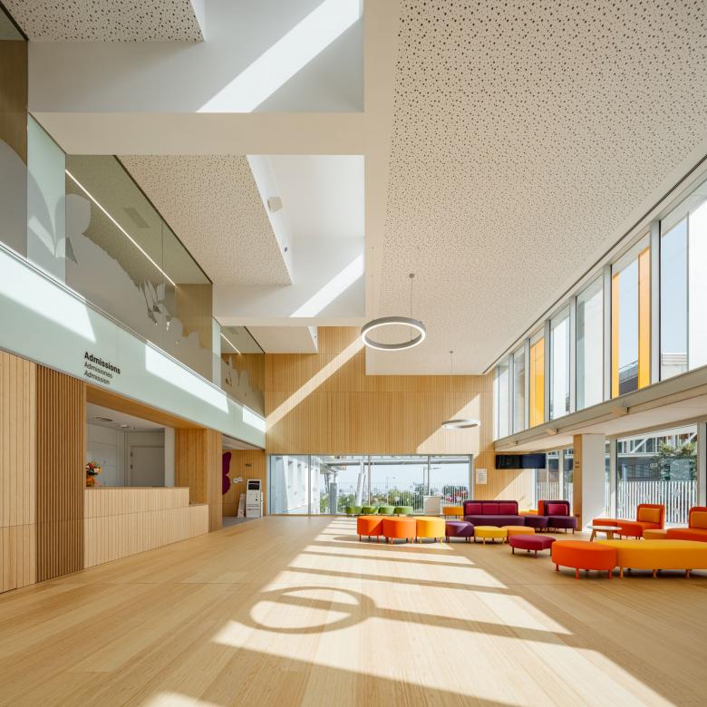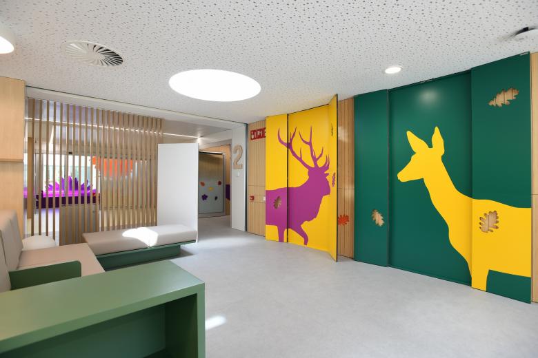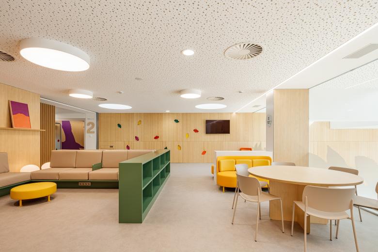 The new Paediatric Cancer Center in Sant Joan de Déu hospital is set at the northwest border of the city, on one of the main arterial roads and with its back to the mountain which limits Barcelona. The centre occupies the existing teaching building; for this project the present arrangement and layout are changed, using the gradient to provide more height, unifying the façade and providing a passageway to connect with the main hospital building.