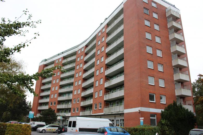 Das 1968 errichtete Wohnhochhaus im Zentrum Moislingens entsprach weder energetisch, technisch noch gestalterisch heutigen Anforderungen. Der abnehmenden Beliebtheit des Stadtteils sind wir nicht mit Rückbau begegnet, stattdessen haben wir das Hochhaus um ein zehntes Geschoss aufgestockt und es damit als Landmarke gestärkt. Im Erdgeschoss sorgen Gewerbe- und Gemeinschaftsräume für eine Nutzungsmischung.