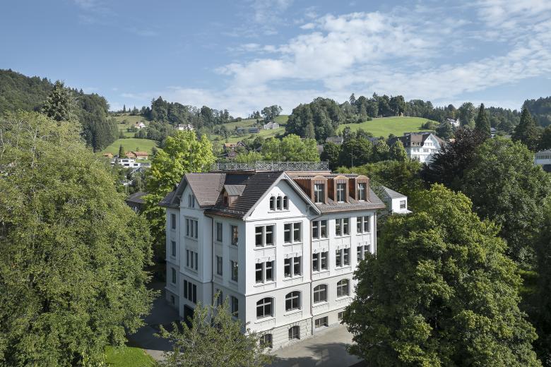 Das denkmalgeschützte Schulhaus Altes Hörli im Dorfkern von Teufen aus dem Jahr 1906 wurde umfassend saniert, und von einer Sekundarschule in eine moderne Primarschule umgenutzt.