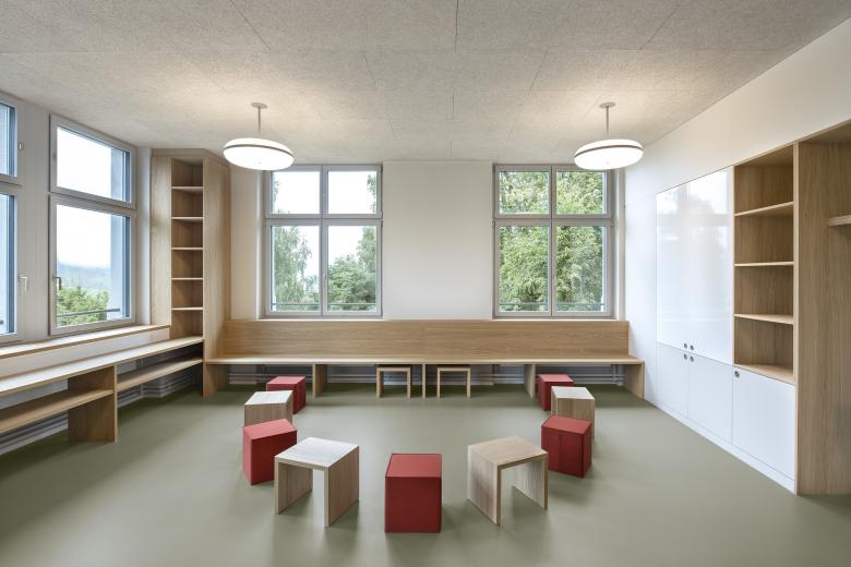 Zusammen mit den Ausblicken in die Appenzeller Landschaft wurde eine optimierte und neue Lernumgebung in alten Mauern für die Teufener Primarschüler geschaffen.