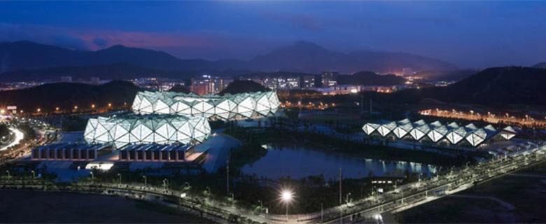 Das Universiade Sports Center in Shenzhen, China, wurde für die 26. Sommerspiele der Welt-Universiade im Jahre 2011 geplant und setzt sich aus einem Stadion, einer Mehrzweckhalle, einer Schwimmhalle und einer weitläufigen Parklandschaft zusammen. Die Architektur ist durch eine kristalline Fassadenstruktur gekennzeichnet, die Stabilität versinnbildlicht und somit einen Kontrast zur Landschaft und den Wasserflächen bildet, welche Dynamik und Wachstum repräsentieren.
