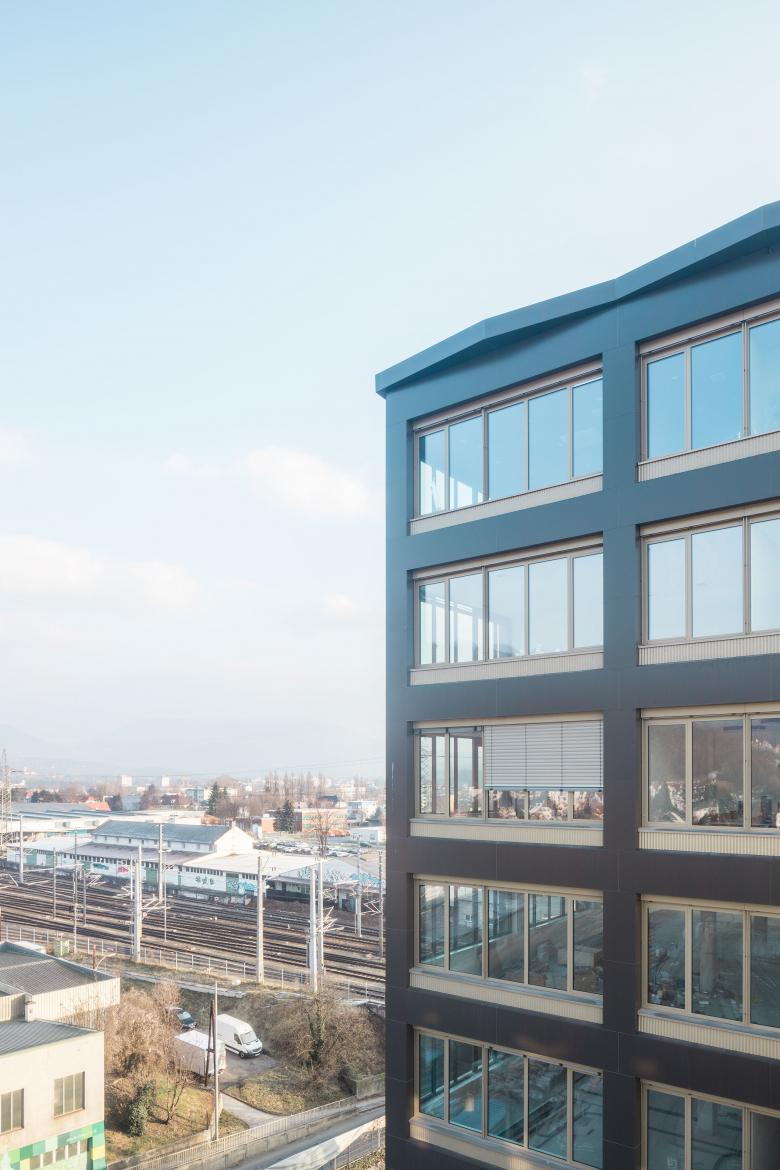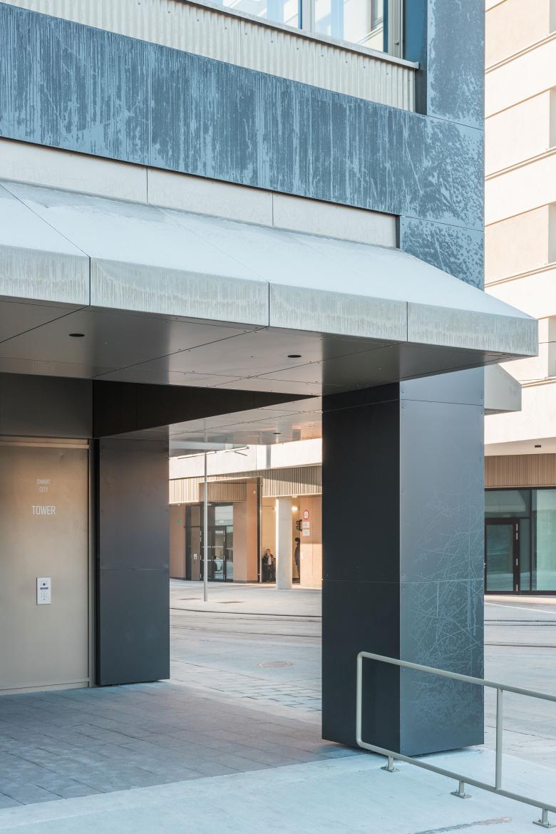 Das sogenannte „Tower“ Bürogebäude markiert den Abschluss und gleichzeitig den Auftakt des Stadtentwicklungsgebiets „Smart City“ in Graz. Die stadträumliche Setzung fasst den Vorplatz mit der Straßenbahnhaltestation und bildet gleichzeitig einen guten Orientierungspunkt an einer wichtigen städtischen Ost-West Verbindungsachse.