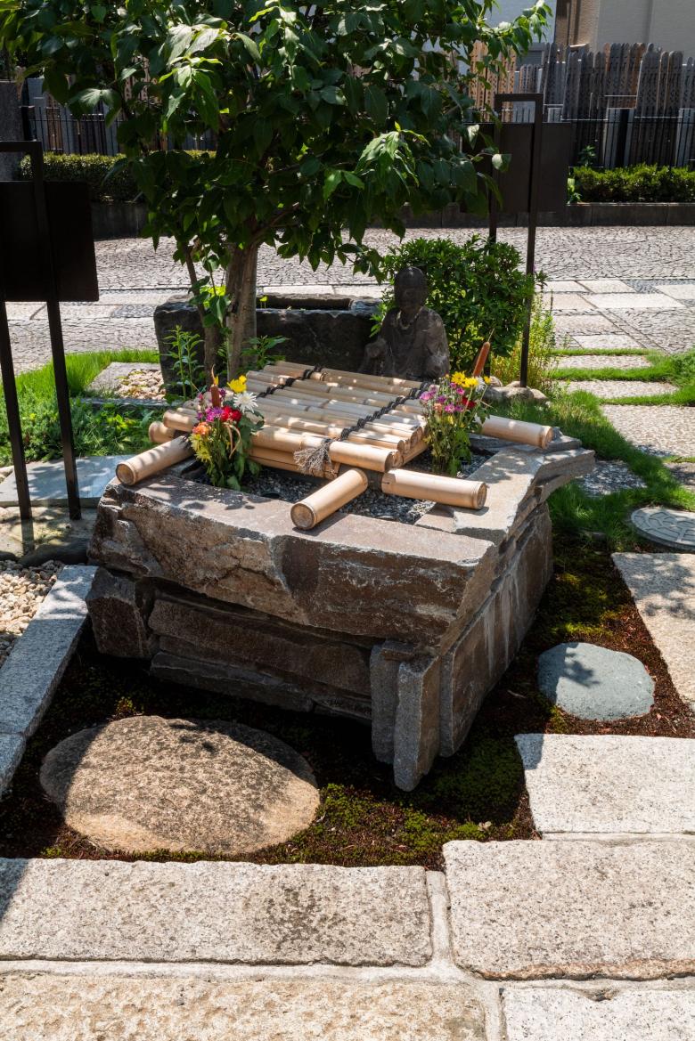 正福寺は、かつて江戸前と呼ばれていた地域にあり、周辺にはその面影を残す料亭等が僅かに残っている。かつては建仁寺垣や関守石がある茶庭が街のそこかしこにあったと推測される。樹木葬をこれら江戸の面影のかけらで構成することで、墓地を味気ない塀で囲み、街並みに背を向けるよりは、「侘び寂び」や「江戸文化の粋」として参加させたいと考えた。街行く人が建仁寺垣を超えて伸びる樹木を見ても、誰も墓地とは思わないであろう。