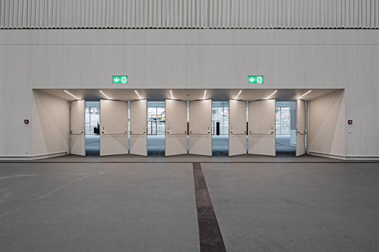 Die Anfang 2024 eröffnete St.Galler Kantonalbank Halle auf dem Olma-Areal ist die grösste stützenfreie Veranstaltungsfläche der Ostschweiz. Sie befindet sich oberhalb der Stadtautobahn und bietet Platz für bis zu 12’000 Personen. Bach Heiden hat für dieses bedeutende Grossprojekt in der Stadt St.Gallen die Aussen- und Innentüren gefertigt und eingebaut.