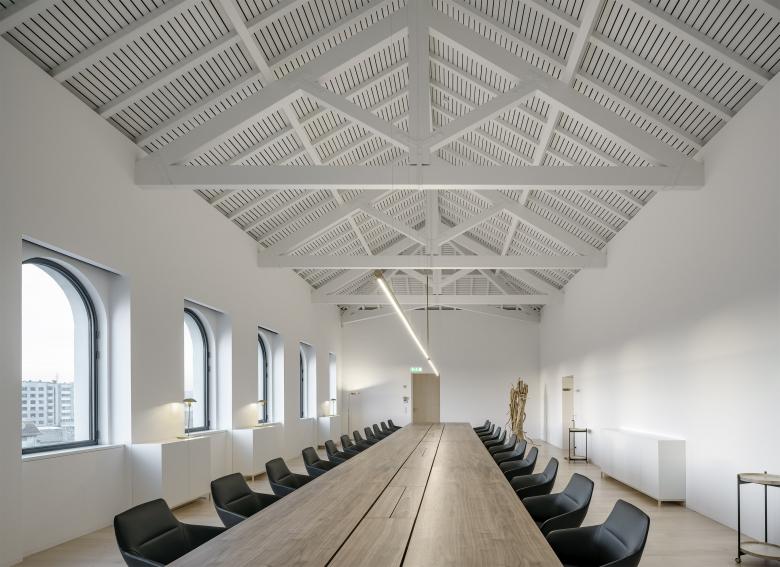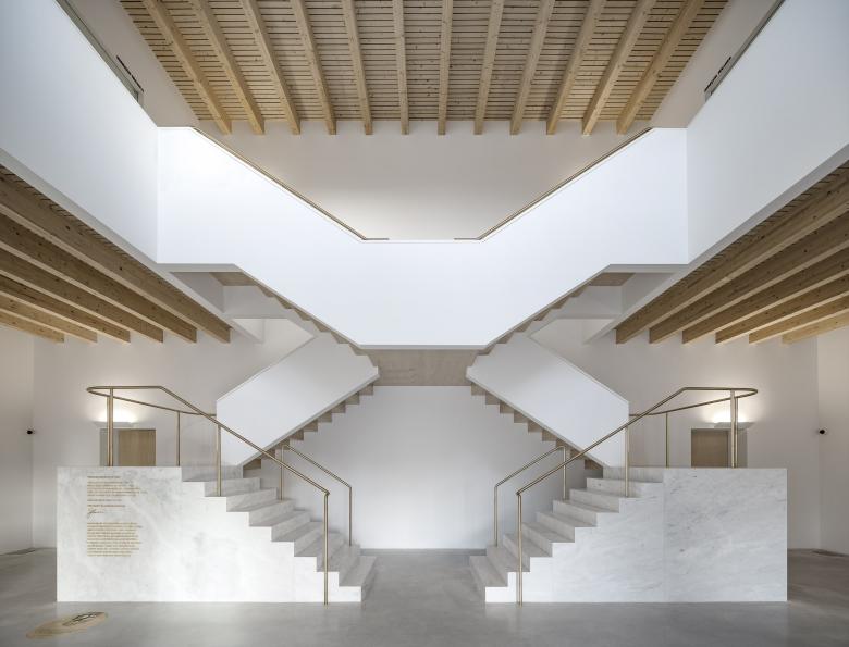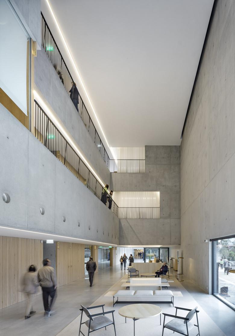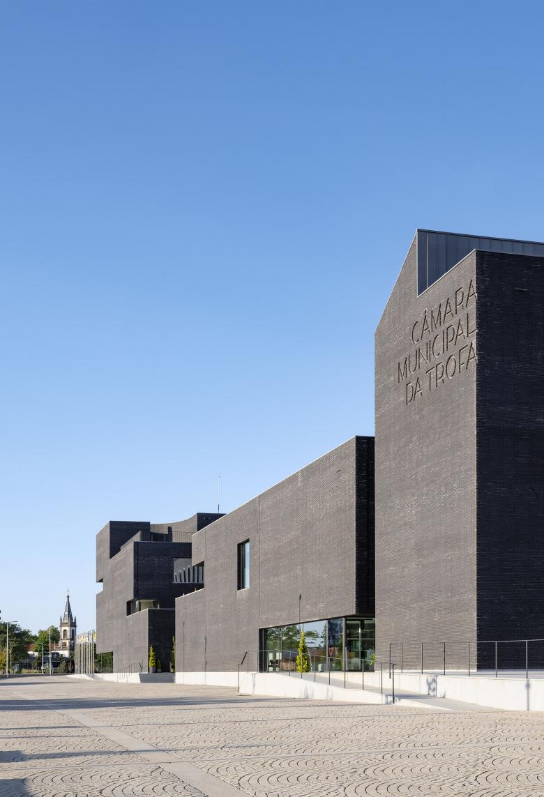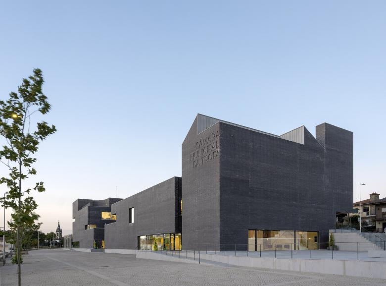 The rehabilitation and the extension of the former “Indústria Alimentar Trofense” buildings into the Trofa City Hall. Trofa is the youngest municipality in Portugal and was the only one that did not have an institutional building. For more than 25 years, the City Council occupied scattered spaces in the city, in a precarious situation. The building site is in the south of the urban centre. An incomplete and old area of the city. occupied by an Industrial complex. The plot covers 6,200.85 sqm. Is a strip measuring 28 by 200 meters parallel to the abandoned railway line. The reuse of the industrial complex required a considerable increase in area and an underground floor. We decided to preserve just the seminal building. The new building proposal reduces itself to a series of 5 juxtaposed narrow parallelepipeds divided into 3 floors. The first parallelepiped is used for the longitudinal circulation in the building. Two more blocks on each of the tops of the old building constitute the central mass of the City Hall, where are located all the municipal services. The third parallelepiped attached to the west façade has lost its configuration, to integrate the old building and to preserve its dialogue with the landscape. It is an empty space, the public space, allowing visual contact between the different levels. The fourth block located on the south top, has the same role and the same free space. The fifth in the underground is for the parking, technical services and storage. The result is a building with 6.700 sqm a footprint of 1.996 sqm and a maximum height of 17.14 m. The building is a synthesis. The budget was limited. Public buildings are not properly maintained. Maintenance is expensive and is not sustainable. The essential can resist the time. Each element is a structural entity, whose subtraction compromises the whole. Materials and construction technologies were selected based on durability, energy efficiency, low maintenance requirements and constructive economy.