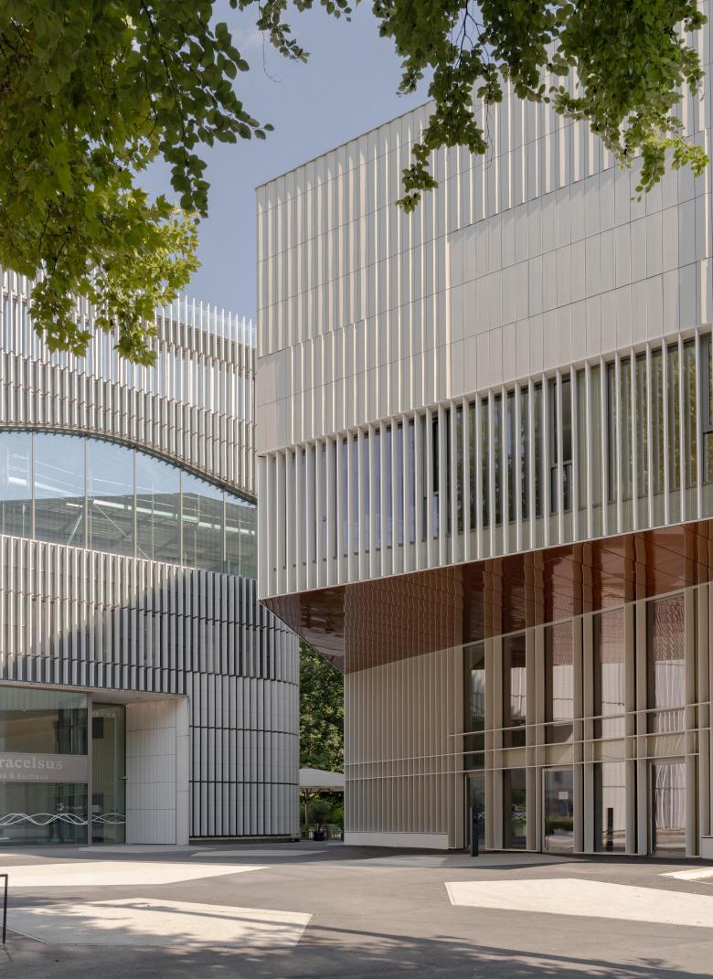 Das kurz UMAK (Universität Mozarteum am Kurgarten) getaufte Gebäude steht in unmittelbarer Nachbarschaft zum Paracelsus Bad und Kurhaus, das ebenfalls von BERGER + PARKKINEN geplant und 2019 eröffnet wurde. Die beiden Häuser werden dank ihrer klaren, identitätsstiftenden Architektursprache einen Schwerpunkt im historischen Kern der Stadt Salzburg bilden. Die studentische Nutzung wird in Verbindung mit den Besucherströmen des Bad- und Kurhauses eine nachhaltige Belebung des nordwestlichen Bereiches im Kurgartens bewirken.