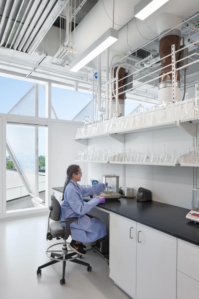 Sustainability is central to the design, with a focus on achieving LEED Platinum certification. The building is divided into low and high-energy zones to optimize HVAC systems and passive strategies. Additionally, radiant heating and cooling systems ensure occupant comfort, and an automated Aircuity system adjusts air flow based on environmental conditions. The building's energy strategy contributes to the university's carbon neutrality goal by 2042. With innovative sunshades designed with advanced materials and a commitment to circularity, the VLEST demonstrates how architecture can support sustainable energy research while fostering collaboration and environmental stewardship.