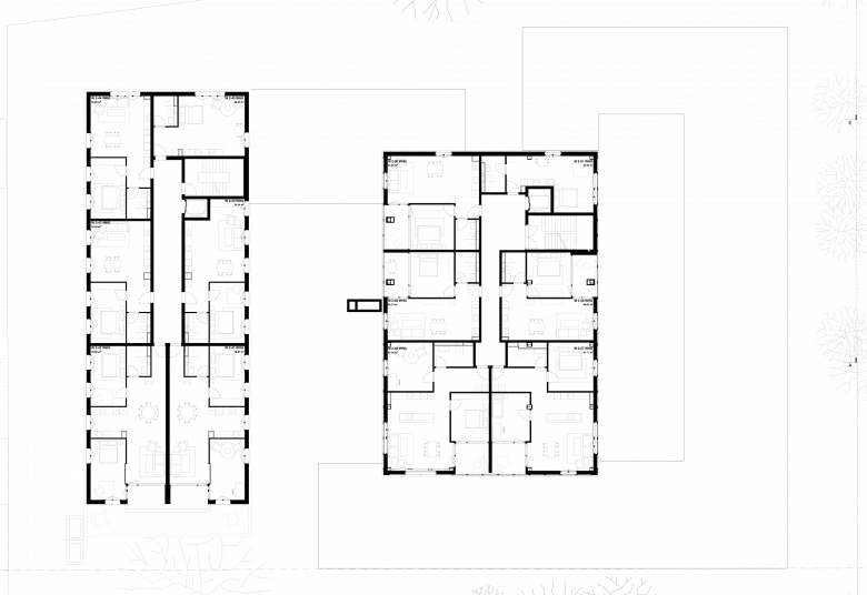 Das neue Wohnungsangebot hebt sich von den Familienwohnungen in der Umgebung ab, wodurch die Durchmischung des Quartiers gefördert wird. Die besonderen räumlichen Bedingungen der bestehenden Gebäudestruktur verlangen nach aussergewöhnlichen Wohnungstypologien. Viele der Wohnungen werden direkt von den beiden Innenhöfen erschlossen. Die grossen Raumhöhen ermöglichen trotz hoher Dichte grosszügig angelegten Wohnraum.