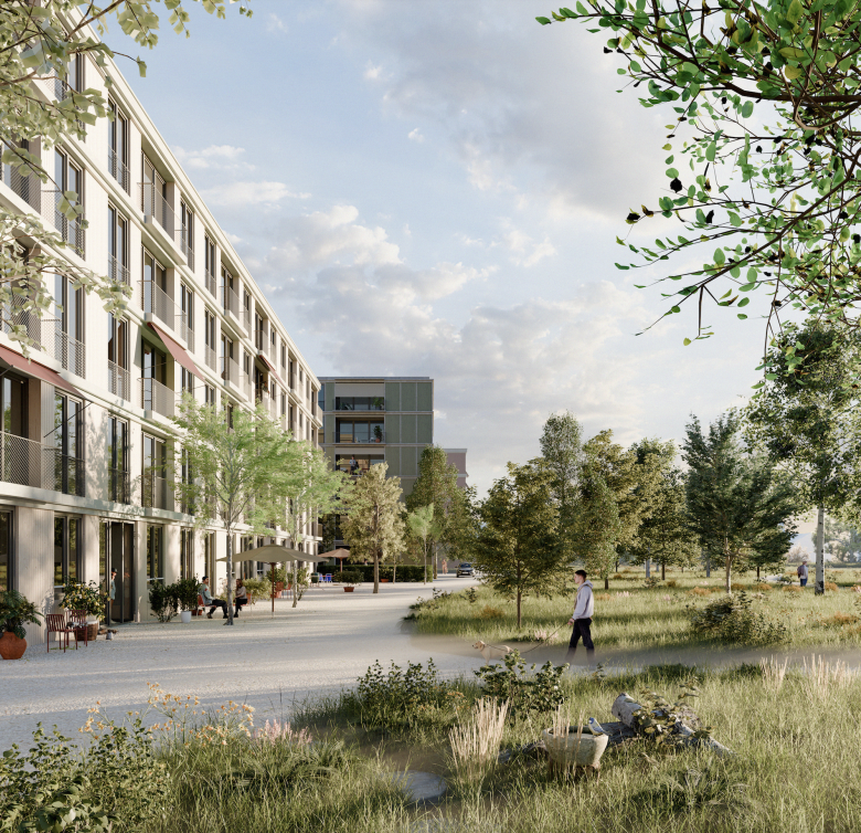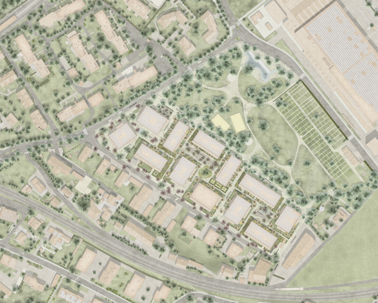 Diese Ausgangslage bietet grosses Potenzial für eine dichte, qualitativ hochwertige Wohnbebauung, welche die sozialen, ökologischen und ökonomischen Dimensionen der Nachhaltigkeit in den Mittelpunkt stellt. Ziel ist es, ein neues Quartier zu schaffen, das durch eine sozialräumliche Vielfalt und sorgfältig gestaltete Übergangsbereiche und Schwellenräume geprägt ist.